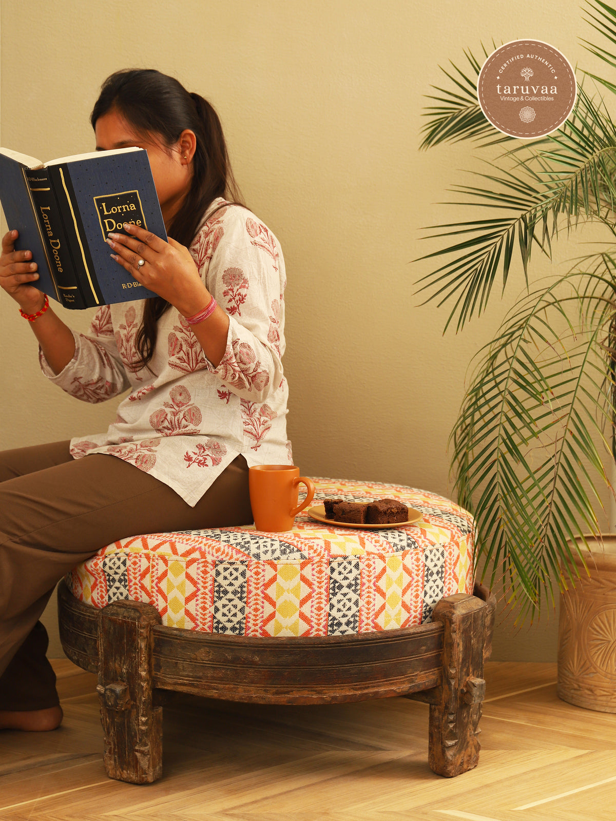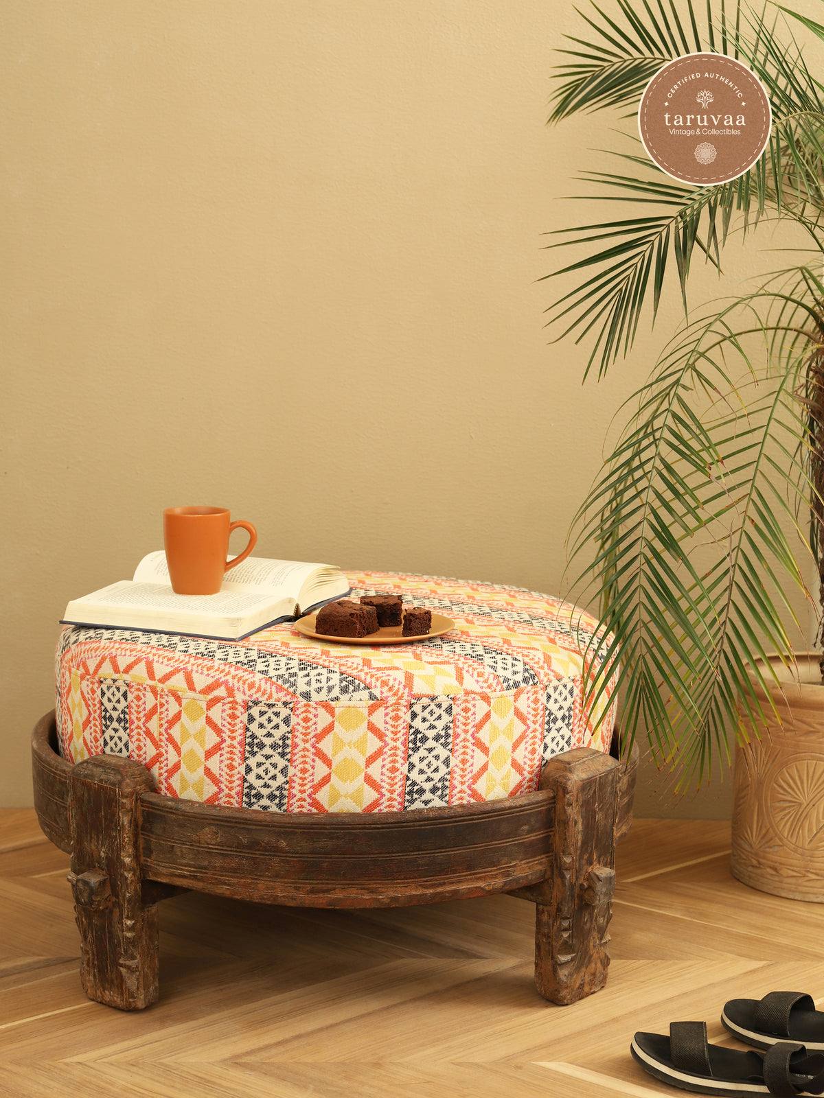 Crafted from the solid wooden base of a vintage chakki (traditional grain mill), the Ayatana Ottoman is a celebration of...